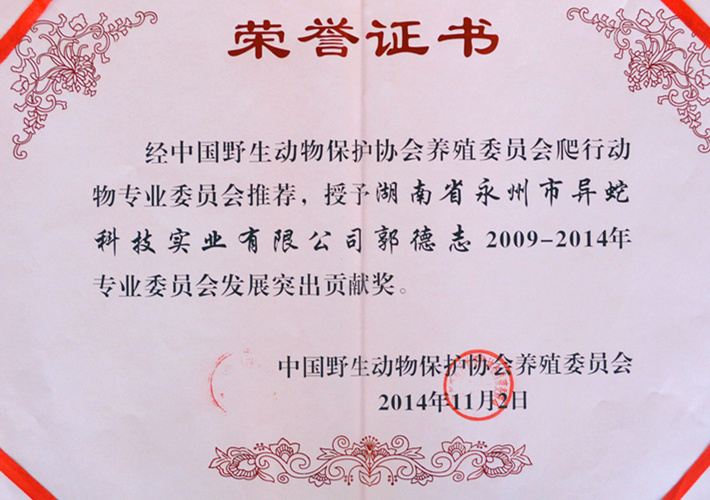 授予郭德志野生動(dòng)物協(xié)會(huì)養(yǎng)殖突出貢獻(xiàn)獎(jiǎng)